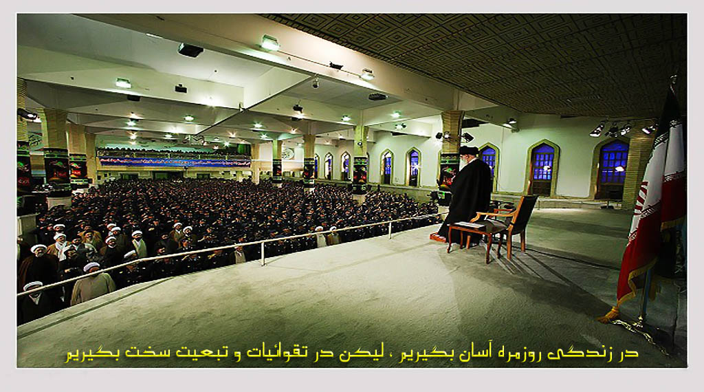 وقتی می گوییم ولایتی را که رسول اکرم (ص) و ائمه (صلوات ا... علیهم) داشتند ، بعد از غیبت، فقیه عادل دارد؛ برای هیچ کس این توهم نباید پیدا شود که مقام فقها همان مقام ائمه (علیهم السلام) و رسول اکرم(صلوات ا... علیه) است. زیرا اینجا صحبت از مقام نیست، بلکه صحبت از وظیفه است. ولایت یعنی حکومت و اداره کشور و اجرای قوانین شرع مقدس، یک وظیفه سنگین و مهم است؛ نه اینکه برای کسی شان و مقام غیر عادی بوجود بیاورد و او را از حد انسان عادی بالاتر ببرد. به عبارت دیگر، "ولایت" مورد بحث، یعنی حکومت و اجرا و اداره، بر خلاف تصوری که خیلی از افراد دارند، امتیاز نیست بلکه وظیفه ای خطیر است...